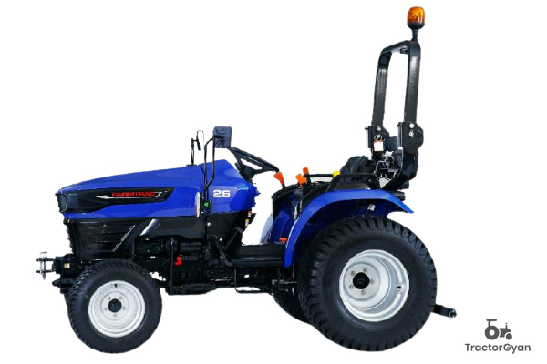 The Farmtrac Atom 26 tractor is a compact and powerful 26 HP tractor with a 4WD system. It is particularly suitable for orchard and row crop farming due to its ability to maneuver in tight spaces. The tractor automates farming activities and reduces manual efforts involved in seeding soil tilling, and harvesting. The Farmtrac Atom 26 tractor is compatible with leading implements, making it convenient for orchard farmers to cultivate crops on small farms. The Farmtrac Atom 26 price tractor ranges from Rs. 5.65 Lakh* to Rs. 5.85 Lakh*. It comes with a 5-year warranty and is available at authorized Farmtrac dealerships. Overall, the Farmtrac Atom 26 tractor is highly regarded by users for its performance and value-for-money features.